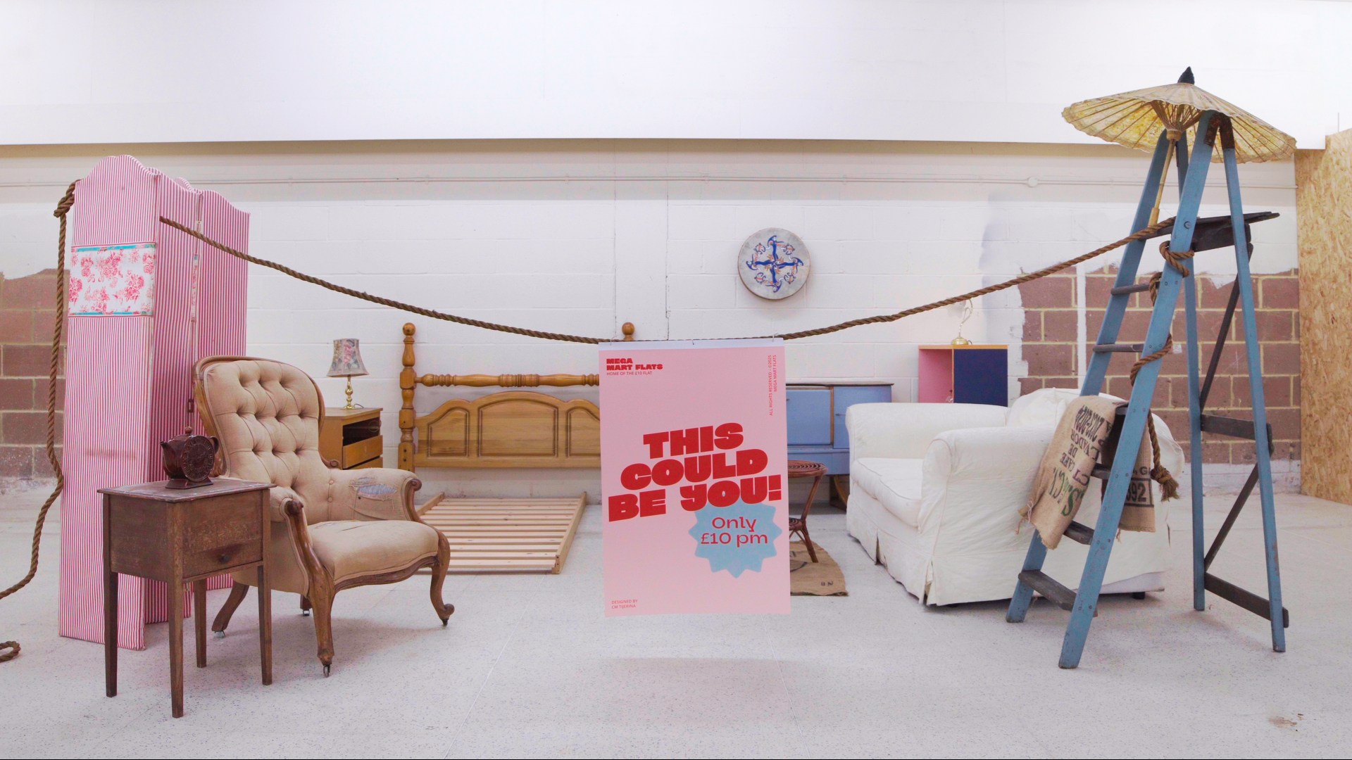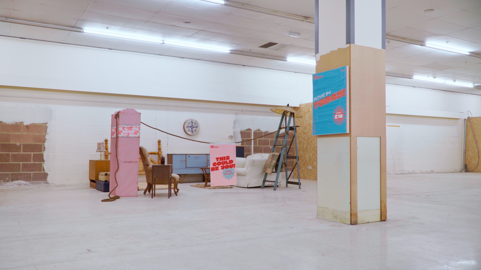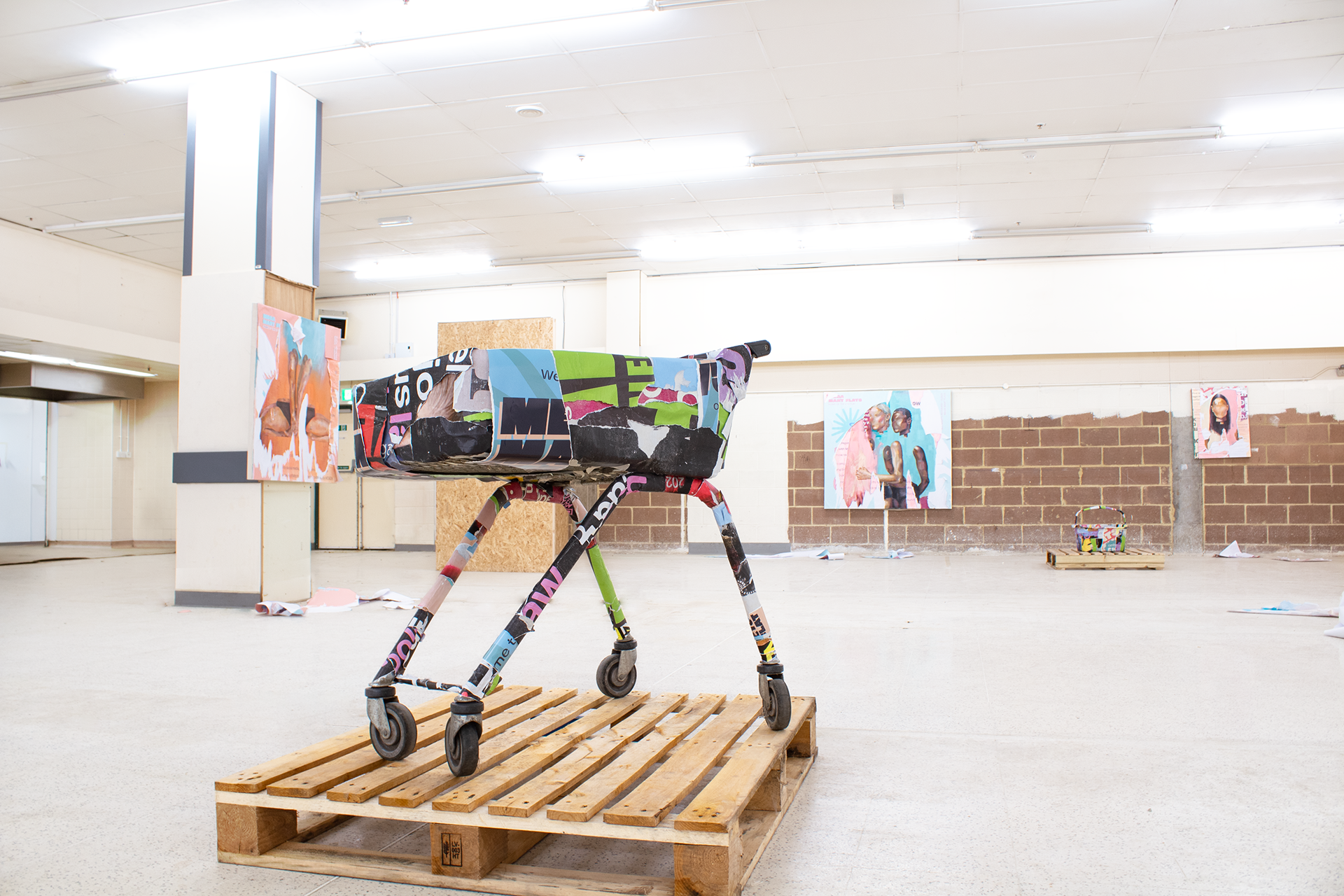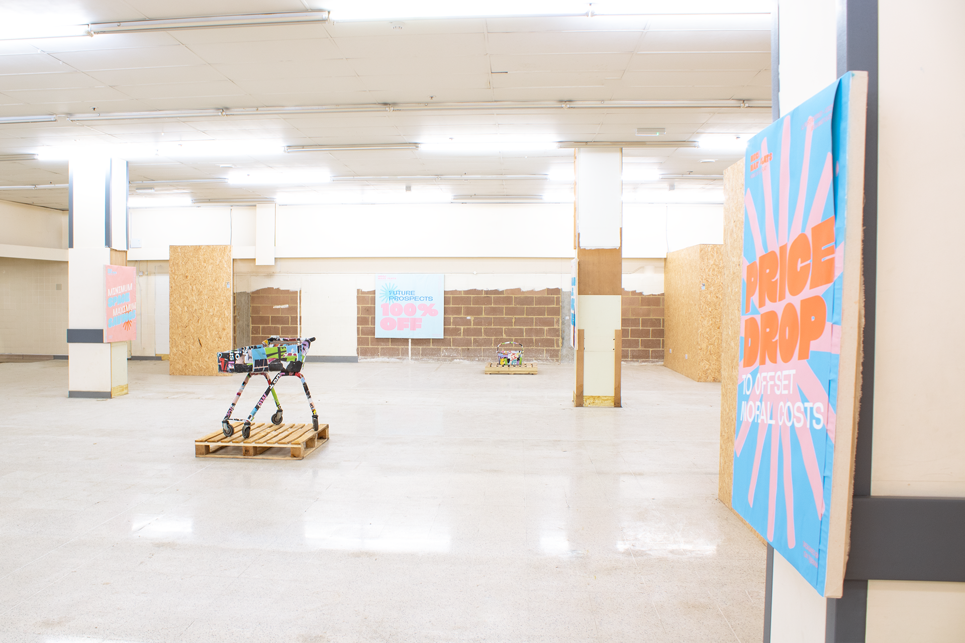 Supermarket Flats (2026) is an exhibition by emerging artist Chelsea Tijerina, developed during her occupation of studio spaces inside a former Morrisons supermarket. The work responds to an increasingly dominant perception of housing as a commercial product, examining the tension between market-driven development and human, communal value.
